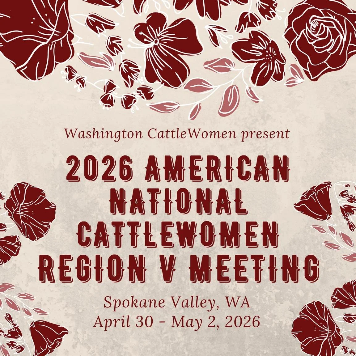 Please join the Washington CattleWomen at the 2026 ANCW Region V Meeting in Spokane Valley, WA.
